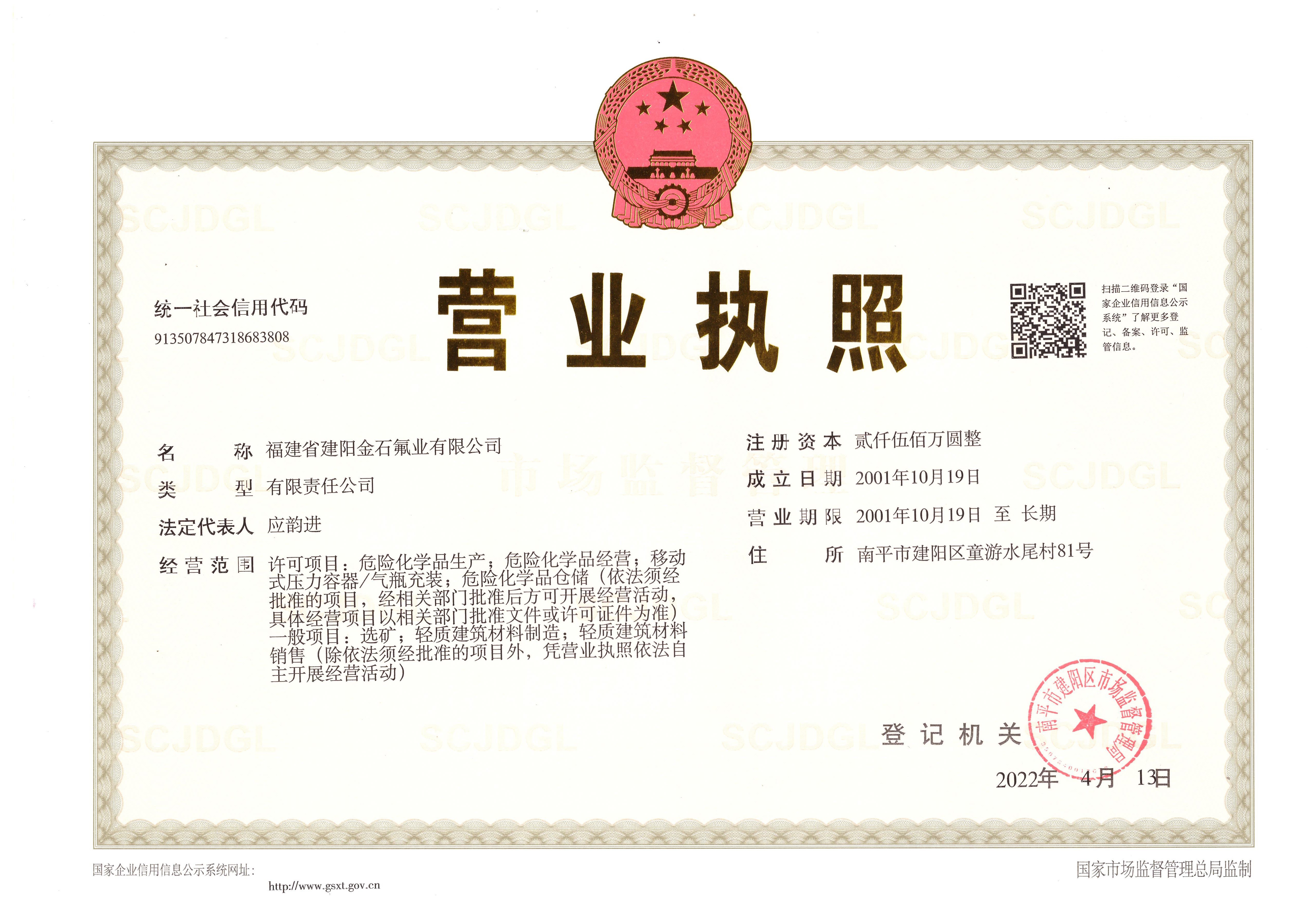 您好!歡迎訪問福建省建陽金石氟業(yè)有限公司官方網站!